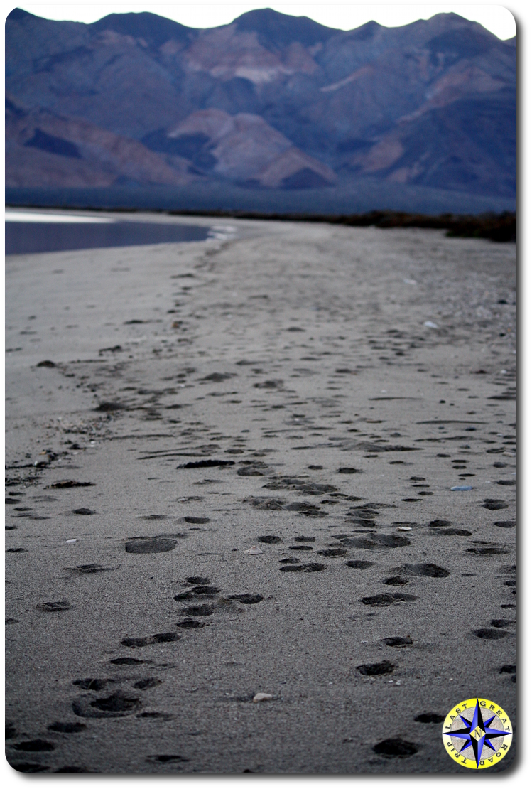 The air hadn’t warmed up much this morning. Everything had a cool, crispness about it and the smell of a new day filled my lungs. The glow of the lagoon this morning was just as spectacular as the long shadows had been the evening before. All around the camp were the fresh prints of the coyotes who had visited in the night.